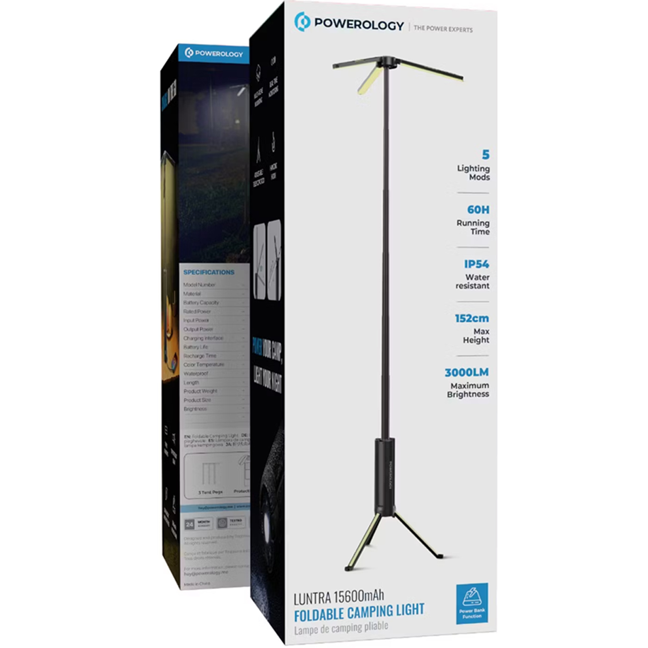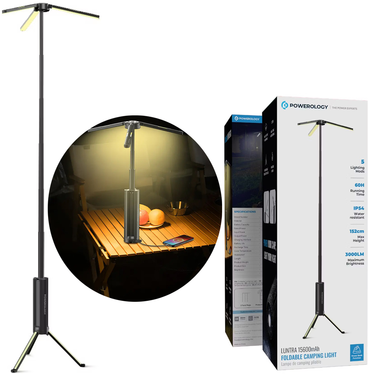 Powerology PPBCHA116BK Luntra 15600mAh Foldable Camping Light