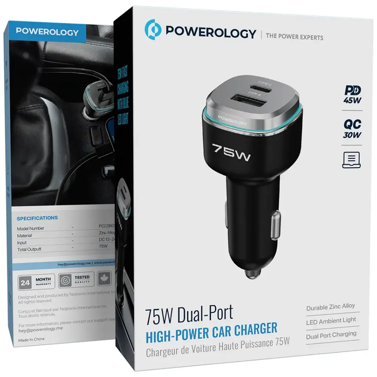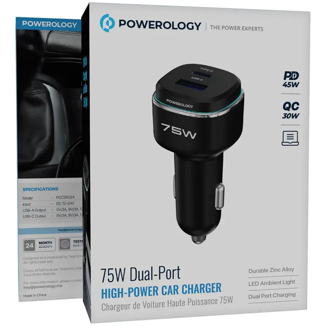 Powerology 75W Car Charger PCCSR024BKOG