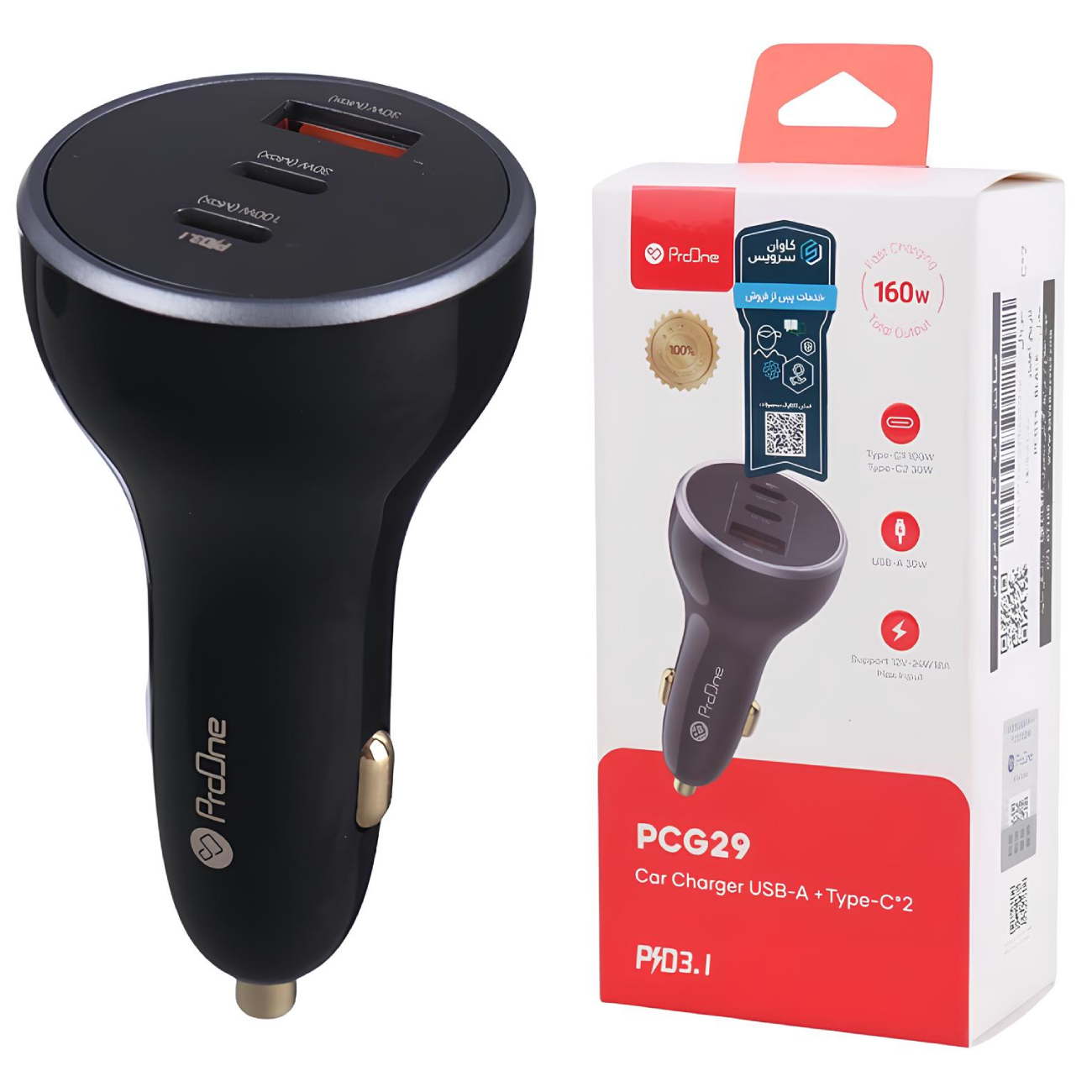 ProOne PCG29 Car Charger USB-A +Type-C*2 160W