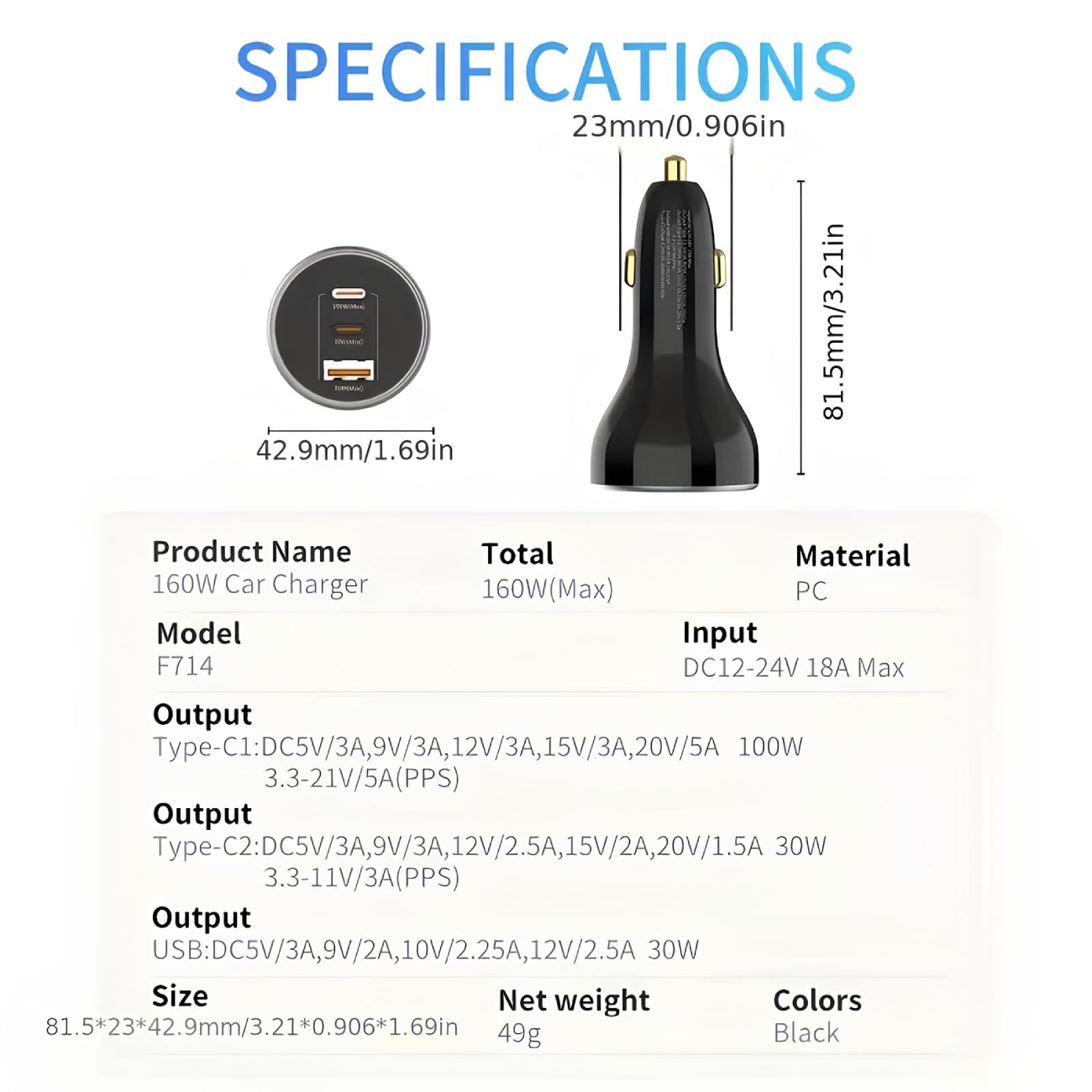 | مشخصات شارژر فندکی | |