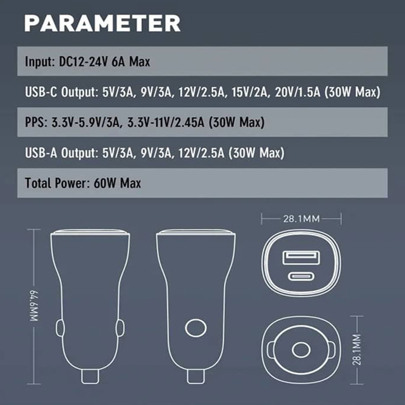 | جریان و ولتاژ USB | 5V/3A, 9V/3A,12V/2.5A (30W Max) |