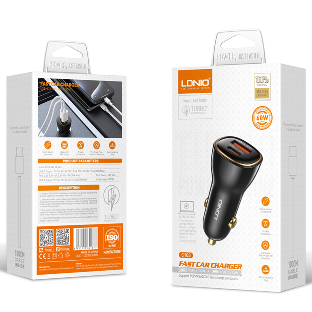 LDNIO 60W PD QC Super Fast Car charger C103