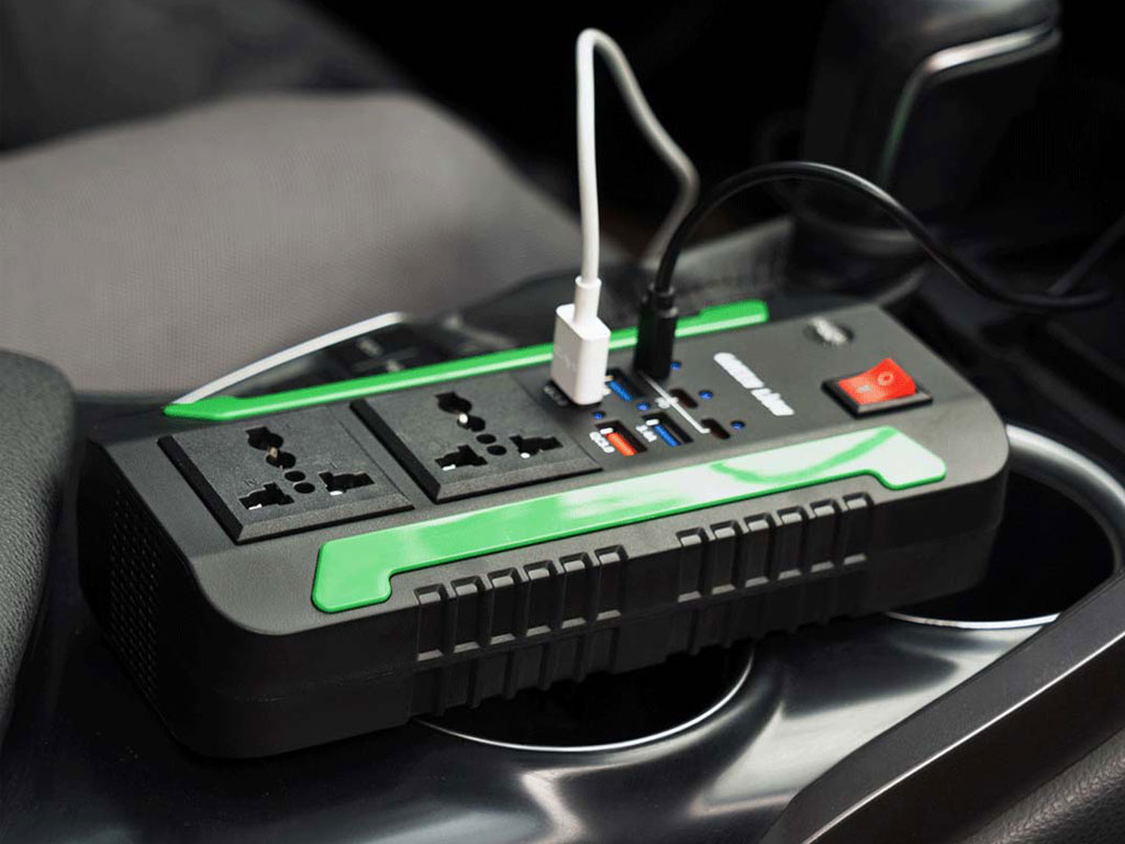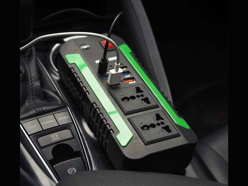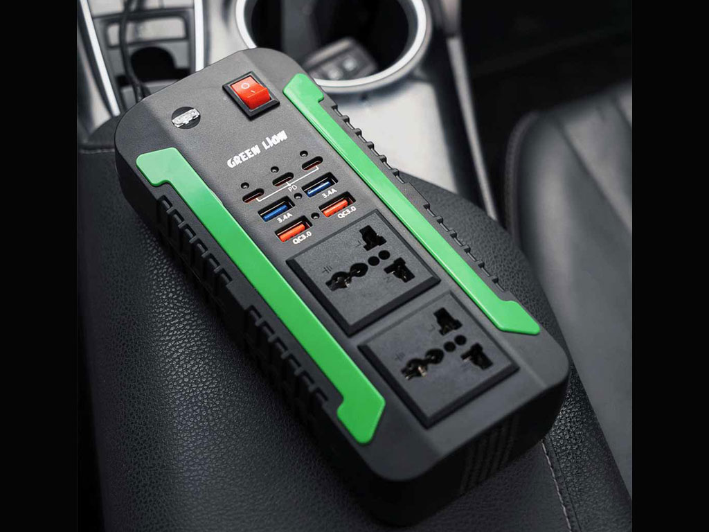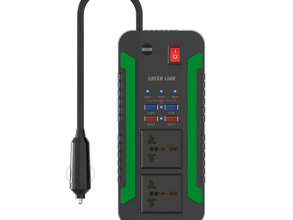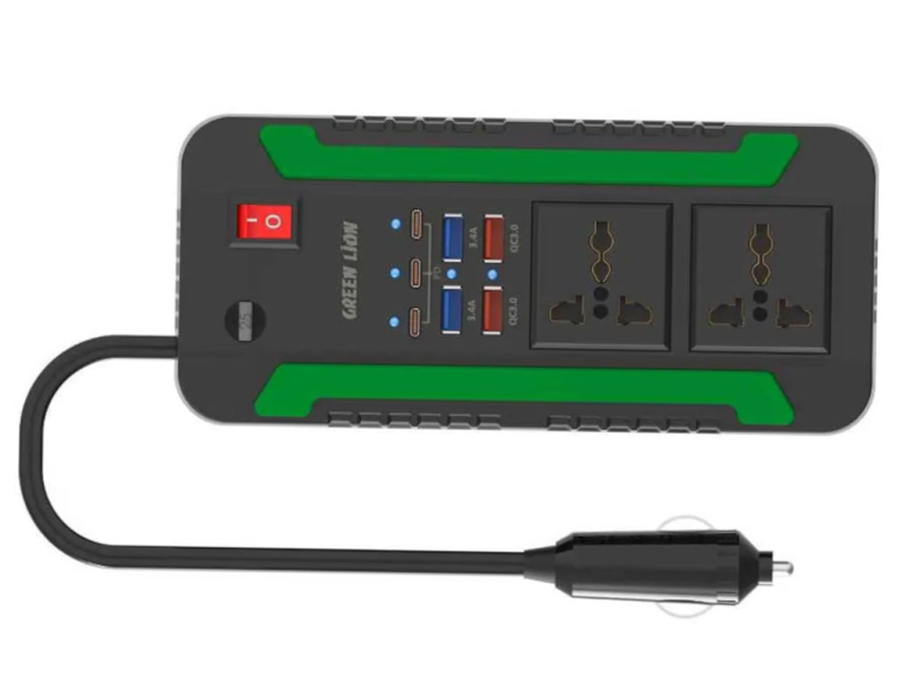 اینورتر و شارژر فندکی فست شارژ ماشین دو سوکت 300 وات گرین GNSPI300WAT