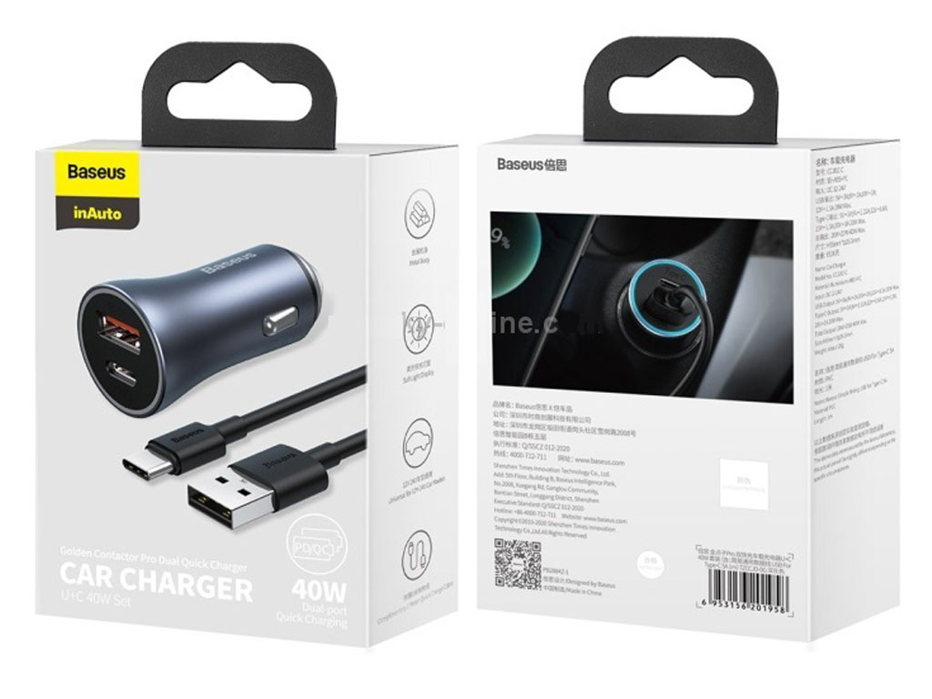 Baseus Car Charger Golden Contactor Pro Type-C + USB 40W Cable Type-C TZCCJD-0G