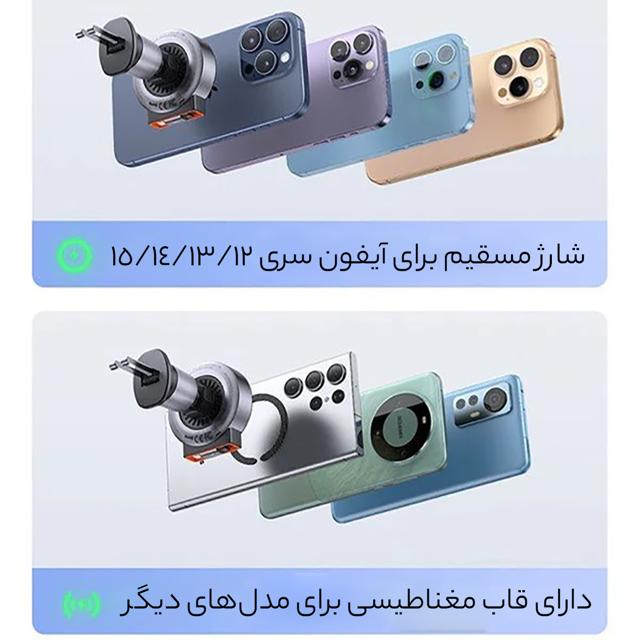| مناسب برای | مناسب برای گوشی آیفون سری 15 /14/ 13/ 12 سایر گوشیها با استفاده از حلقههای فلزی |
