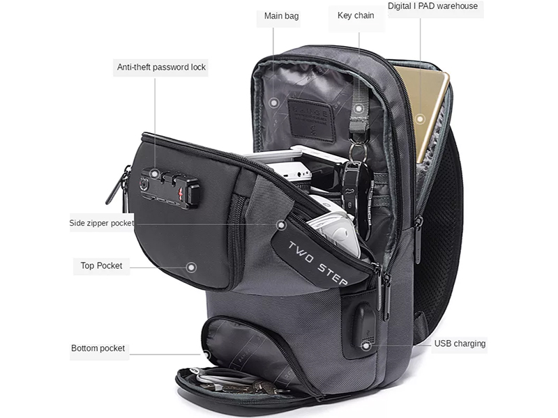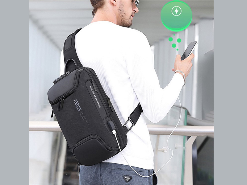 کوله تک بند ضد سرقت یو اس بی دار بنج BANGE BG-7082 Anti-theft TSA Lock Bag Waterproof Chest Pack