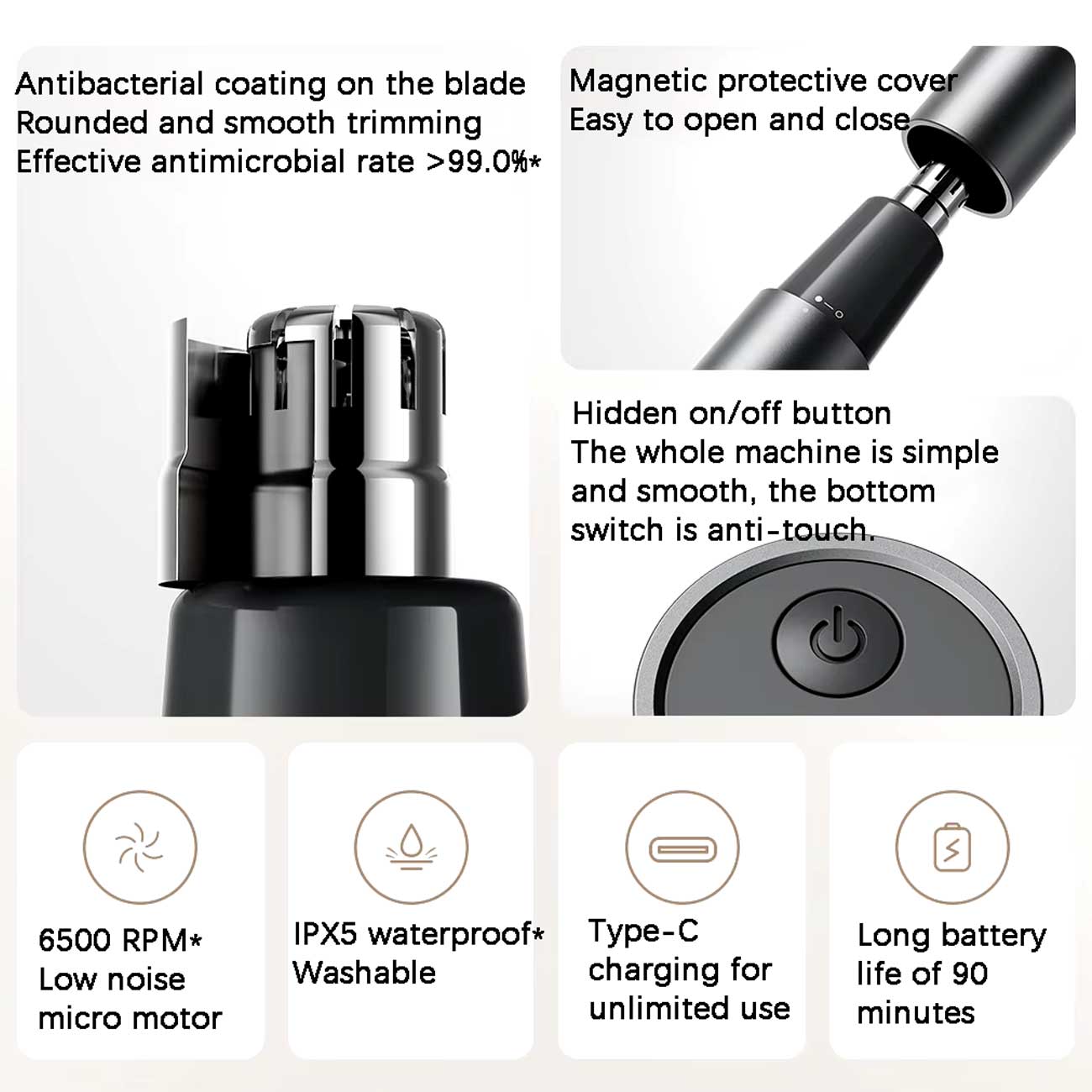 این دستگاه با تیغههای دایرهای شکل و چرخشی، موهای زائد بینی و گوش را بدون ایجاد کشش یا درد قطع میکند. طراحی ایمن تیغهها باعث میشود پوست حساس اطراف بینی و گوش تحریک نشود و تجربهای راحت و بیدردسر داشته باشید.