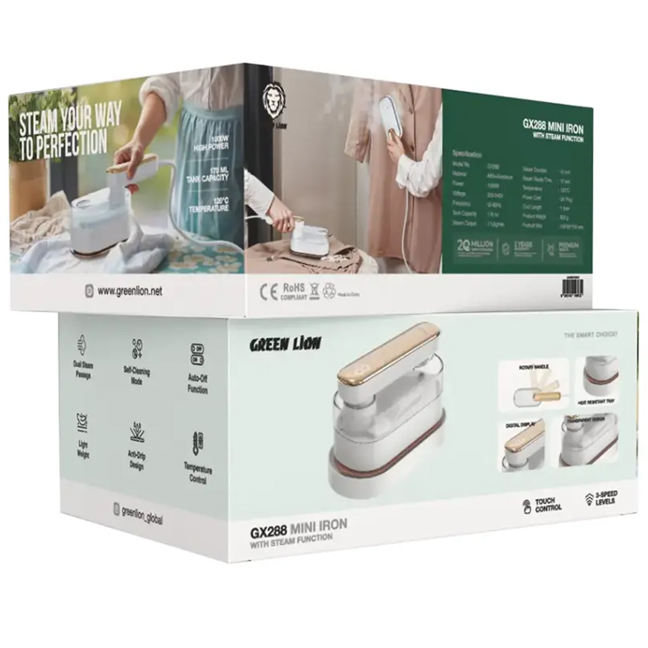 Green Lion GX288 Mini Iron with Steam Function - GNMIIORNWH