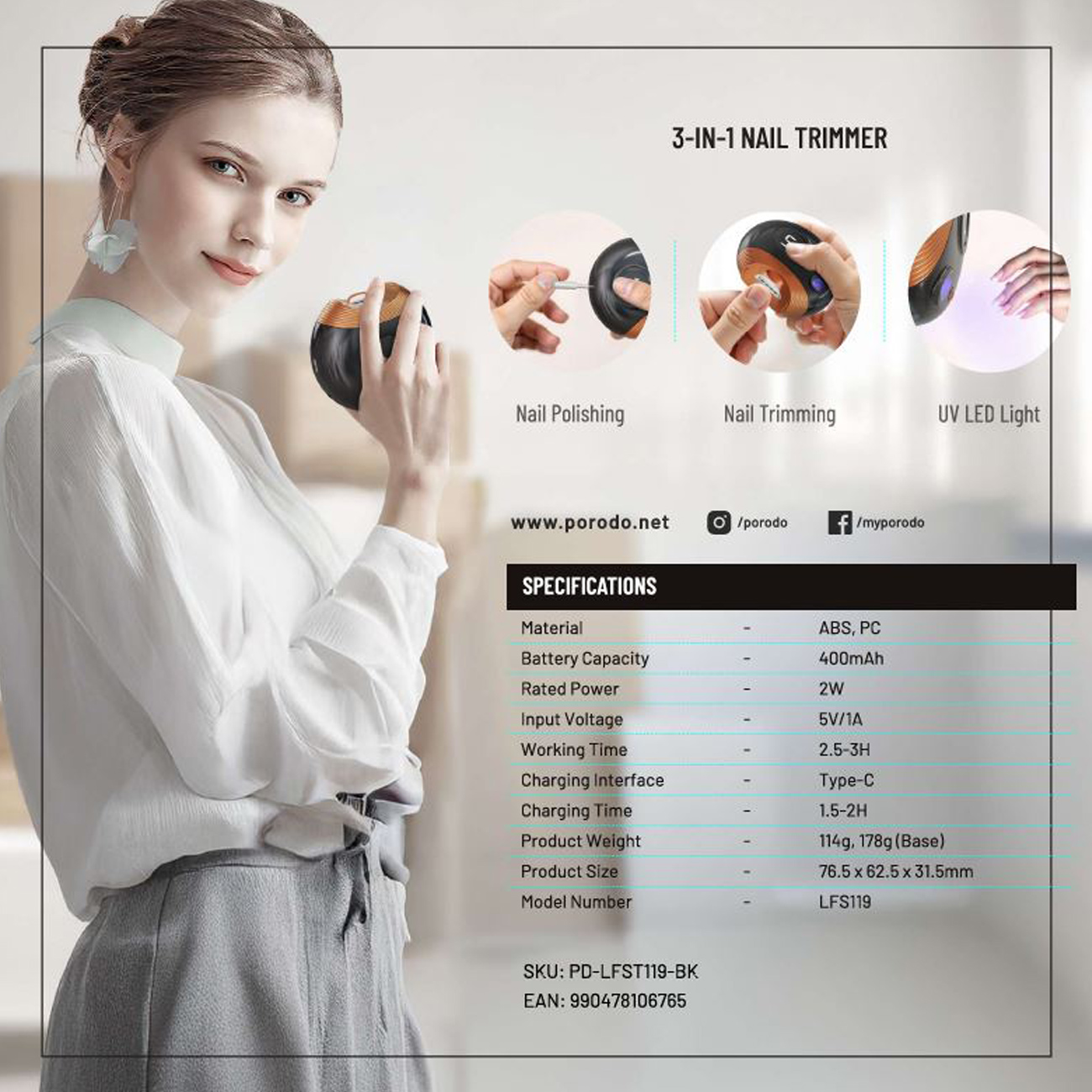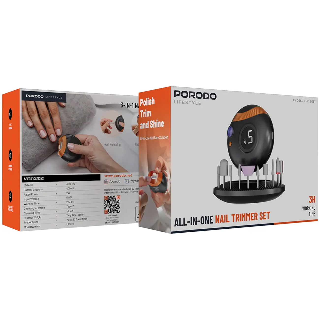 ست ناخن گیر و سوهان شارژی پورودو porodo مدل PDLFST119BK