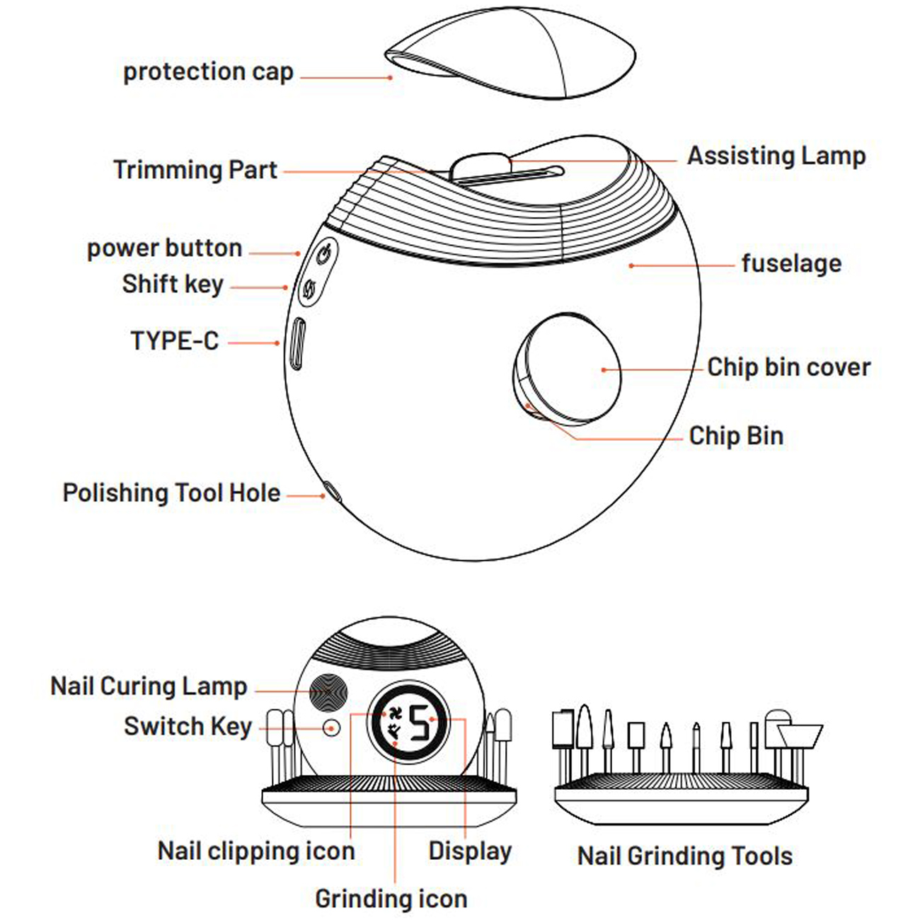 | عملکرد | کوتاه کردن ناخن، پولیش ناخن، تثبیت با چراغ UV |