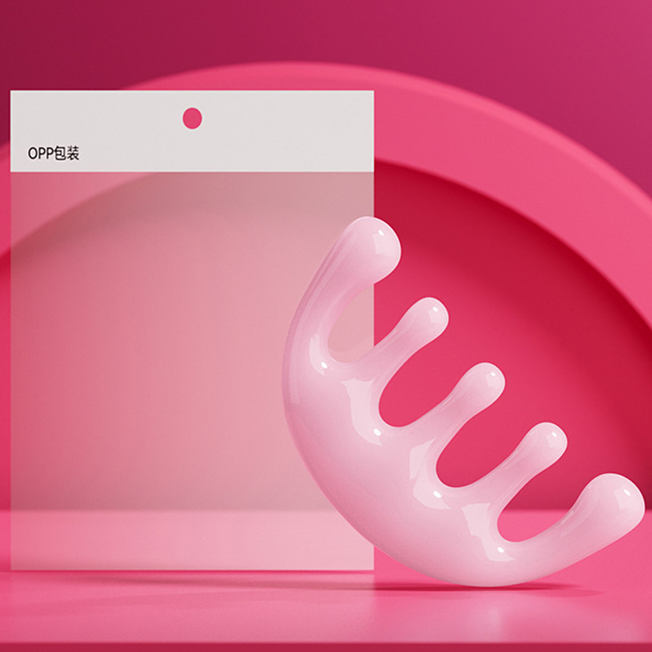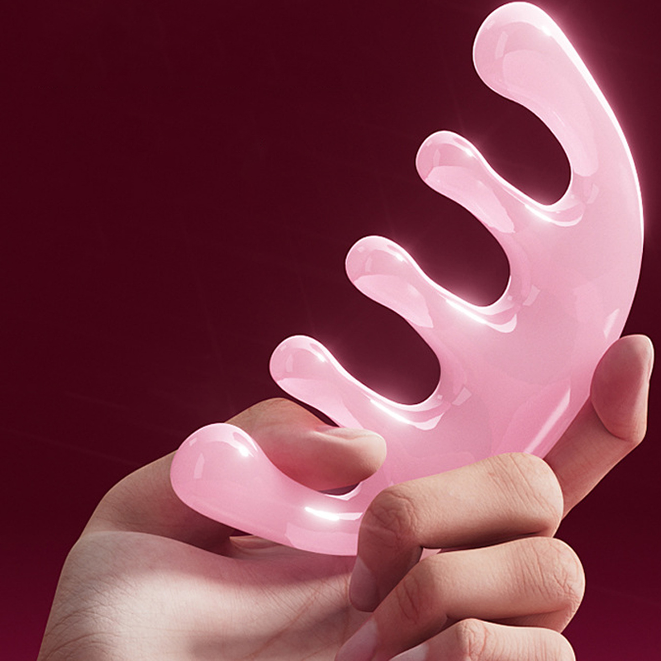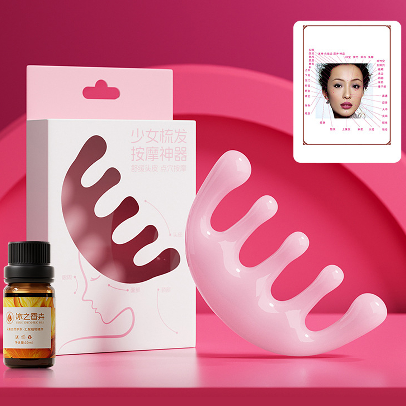 Pink girl's massage comb for facial lifting and scalp massage