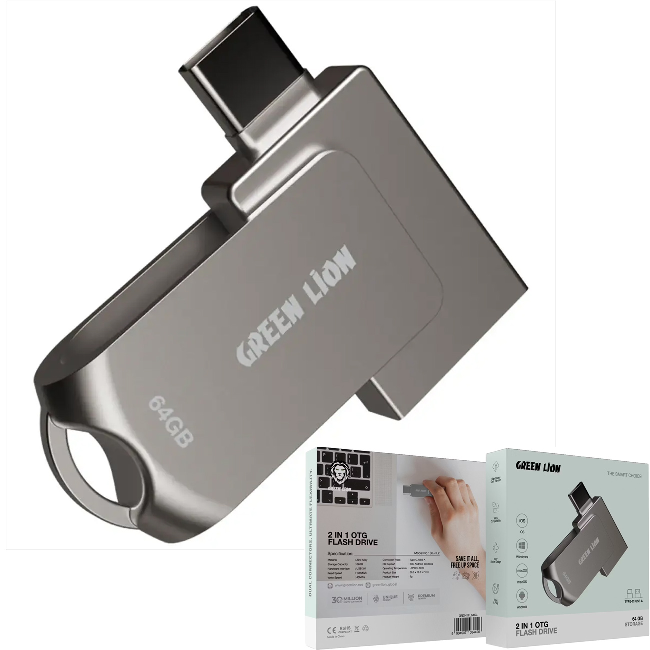 Green Lion 2 in 1 OTG USB-C Flash Drive GN2N1FL64SL