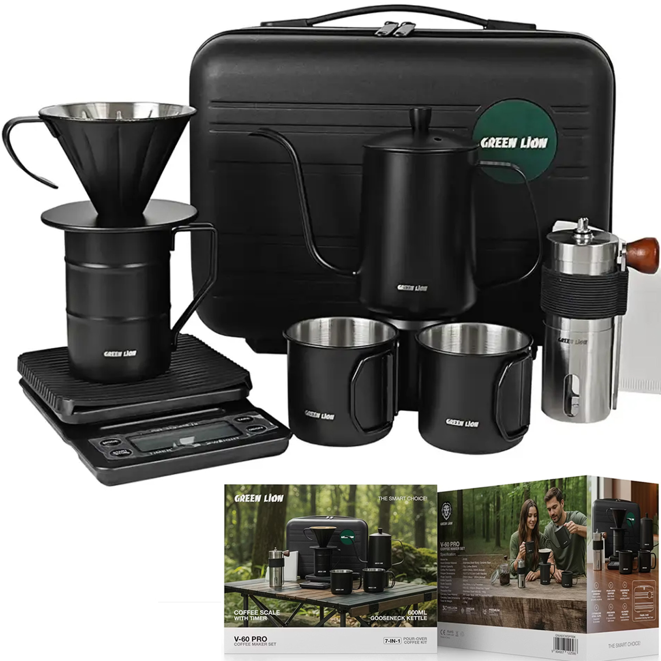 Green Lion V-60 Pro Coffee Maker Set with Gooseneck Kettle GNV60CMSPRGN