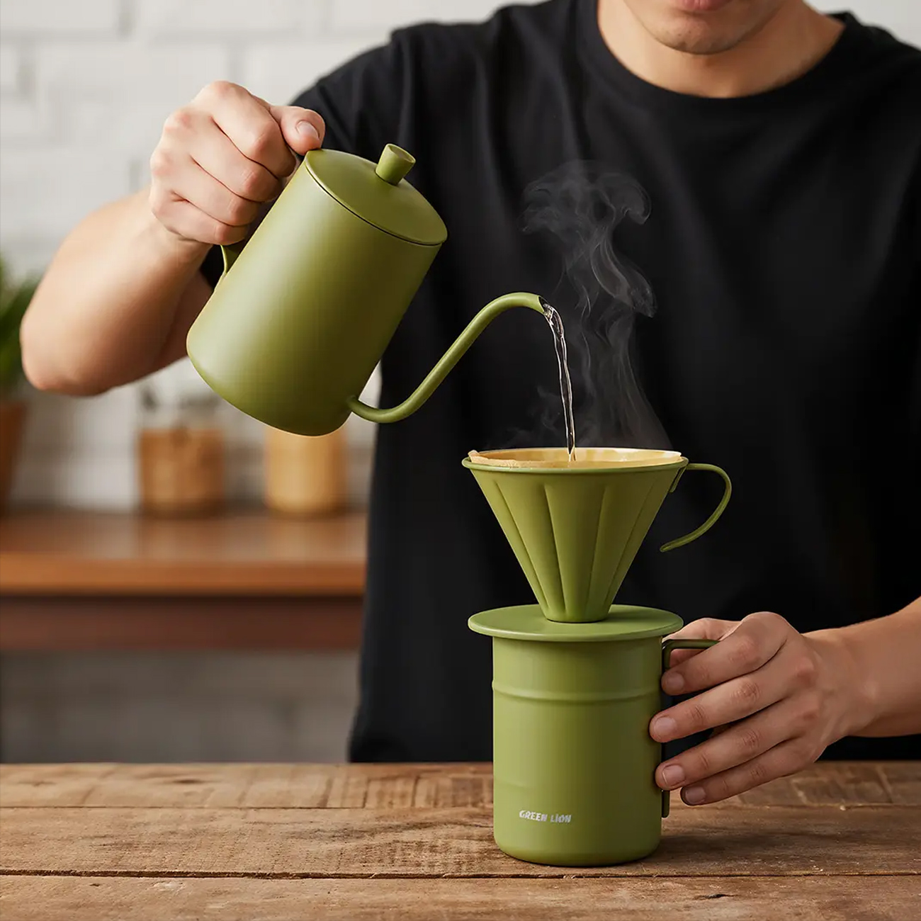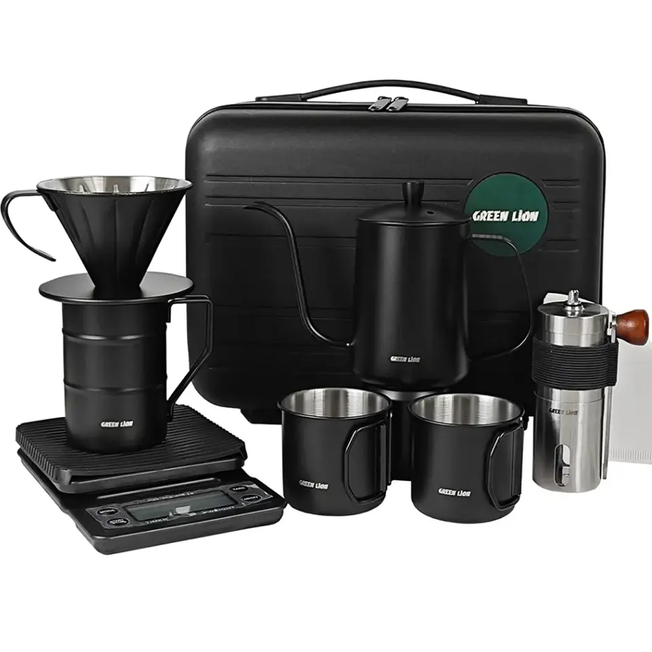 ست قهوه ساز گرین لاین Green Lion مدل V-60 Pro با کتری گردن غازی