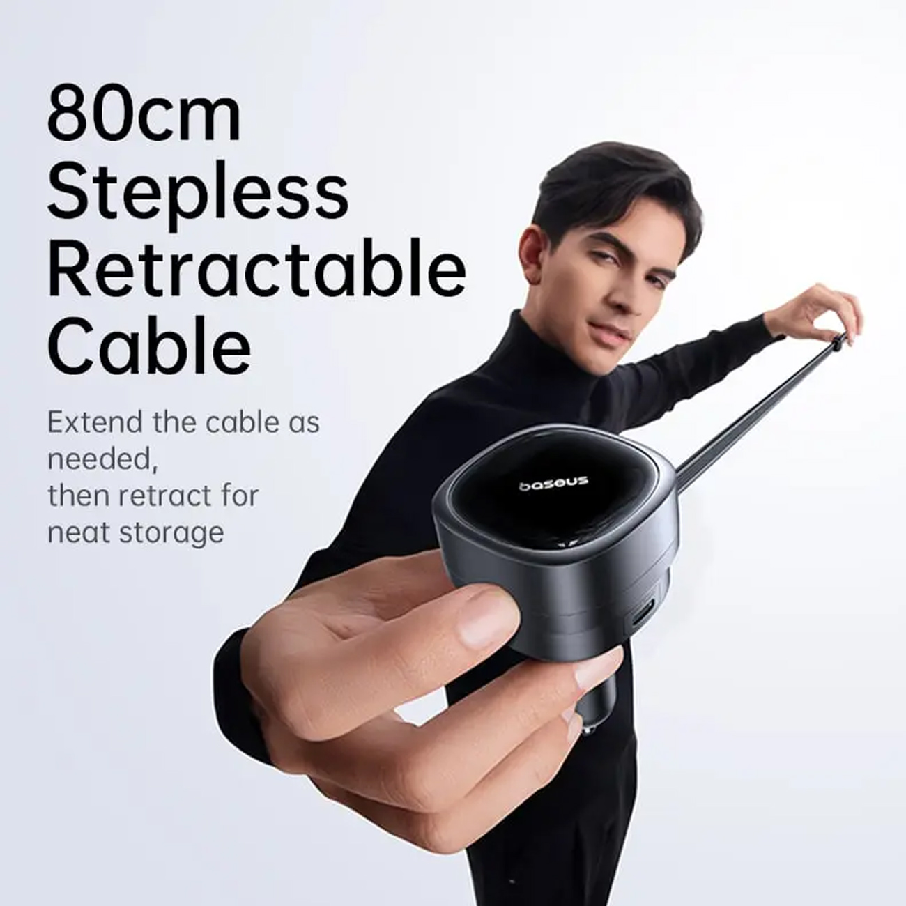 Baseus PrimeTrip VR1 Car Charger with Retractable Cable (U+C)+Type-C 60W BSCC-TX-UC-C