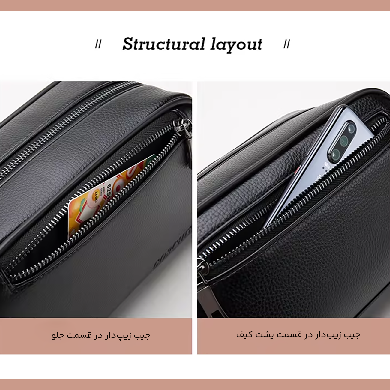 | طراحی جیب زیپ دار در قسمت پشت و جلو | |