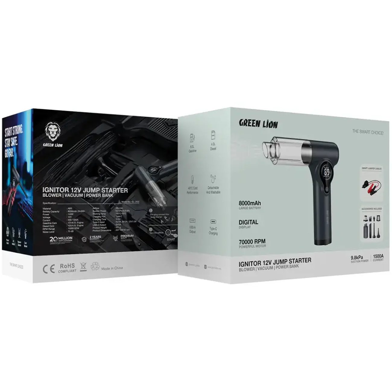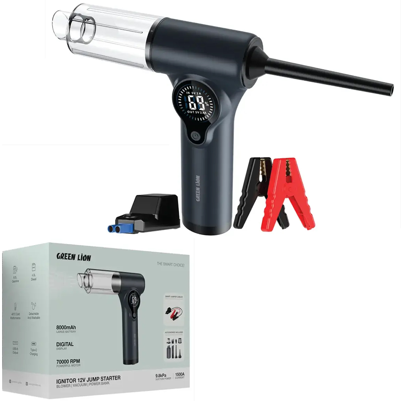 Green Lion GNIGNTRJSGY Ignitor 12V Jump Starter | Blower | Vacuum | Power Bank