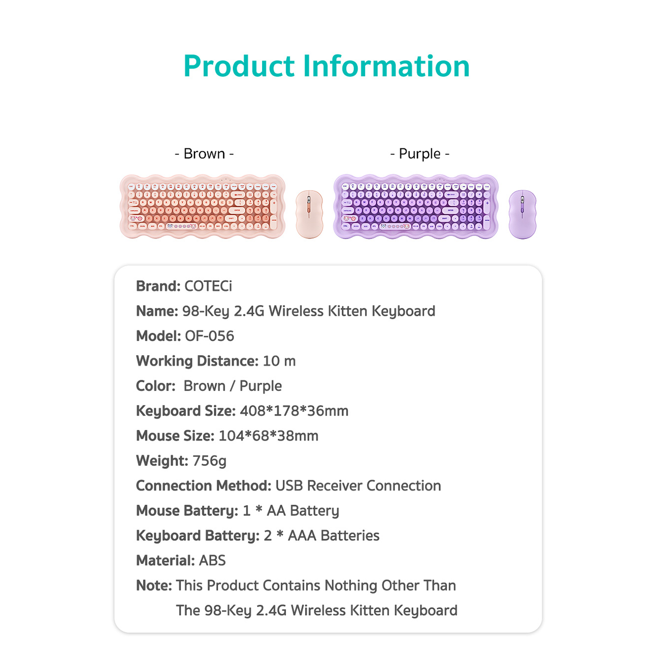کیبورد و ماوس بی سیم کوتسی Coteci مدل OF-056