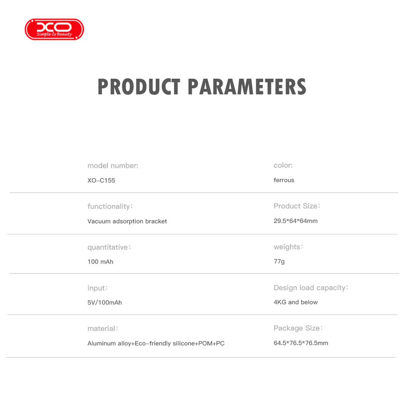 هولدر ایکساو C155 با بدنه مقاوم و طراحی مینیمال ساخته شده تا دوام و طول عمر بالایی داشته باشد. قابلیت استفاده چند منظوره آن، امکان نصب روی داشبورد، میز یا سطوح صاف دیگر را فراهم میکند و فضای کمی اشغال میکند.