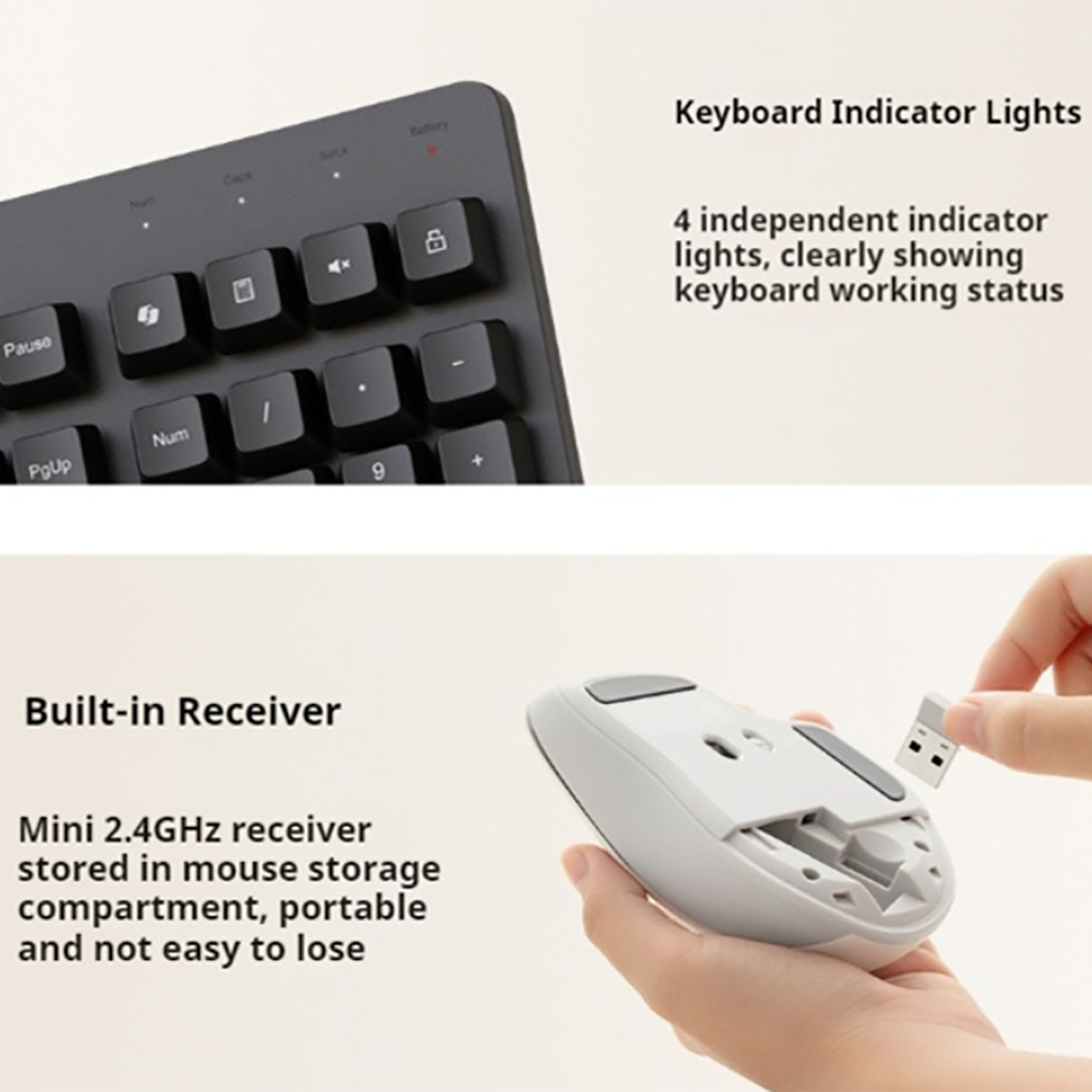 ست ماوس و کیبورد شیائومی مدل HWG دارای عمر باتری طولانی هستند که نیاز به تعویض مداوم باتری را به حداقل میرساند. این ویژگی باعث میشود که شما بتوانید مدت طولانی از این محصول استفاده کنید بدون اینکه نگران تمام شدن باتریها باشید.