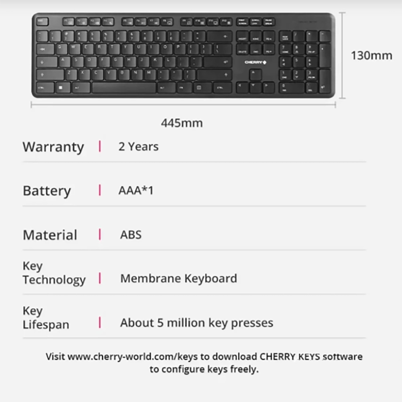 | اندازه کیبورد | 445×130 میلی متر |
